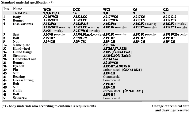 ASTM A 216 WCB, TRIM Nr. 8 according to